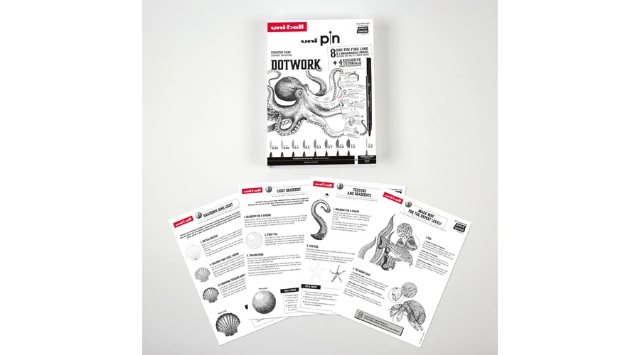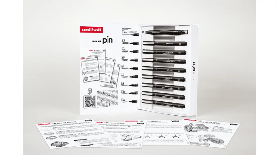 Továbbá egy részletes prospektus bemutatja az Uni Pin-el való rajzolás technikáit.